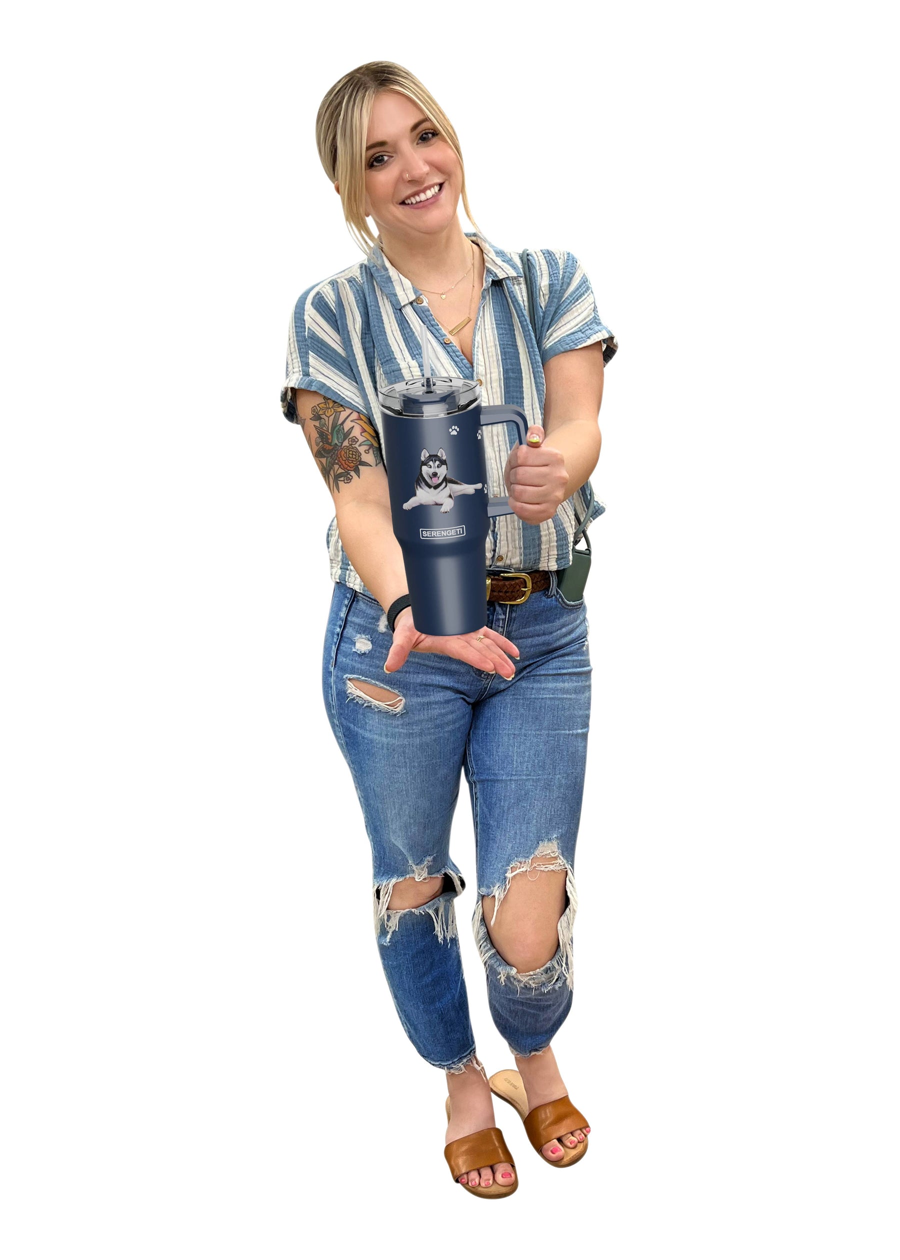 Keep your drinks just right with this 40oz Siberian Husky Tumbler. Featuring a playful 3D printed design of the iconic husky, it’s vacuum insulated to keep your beverages hot or cold for hours. Perfect for husky lovers who want to add a bit of fun and flair to their daily hydration!