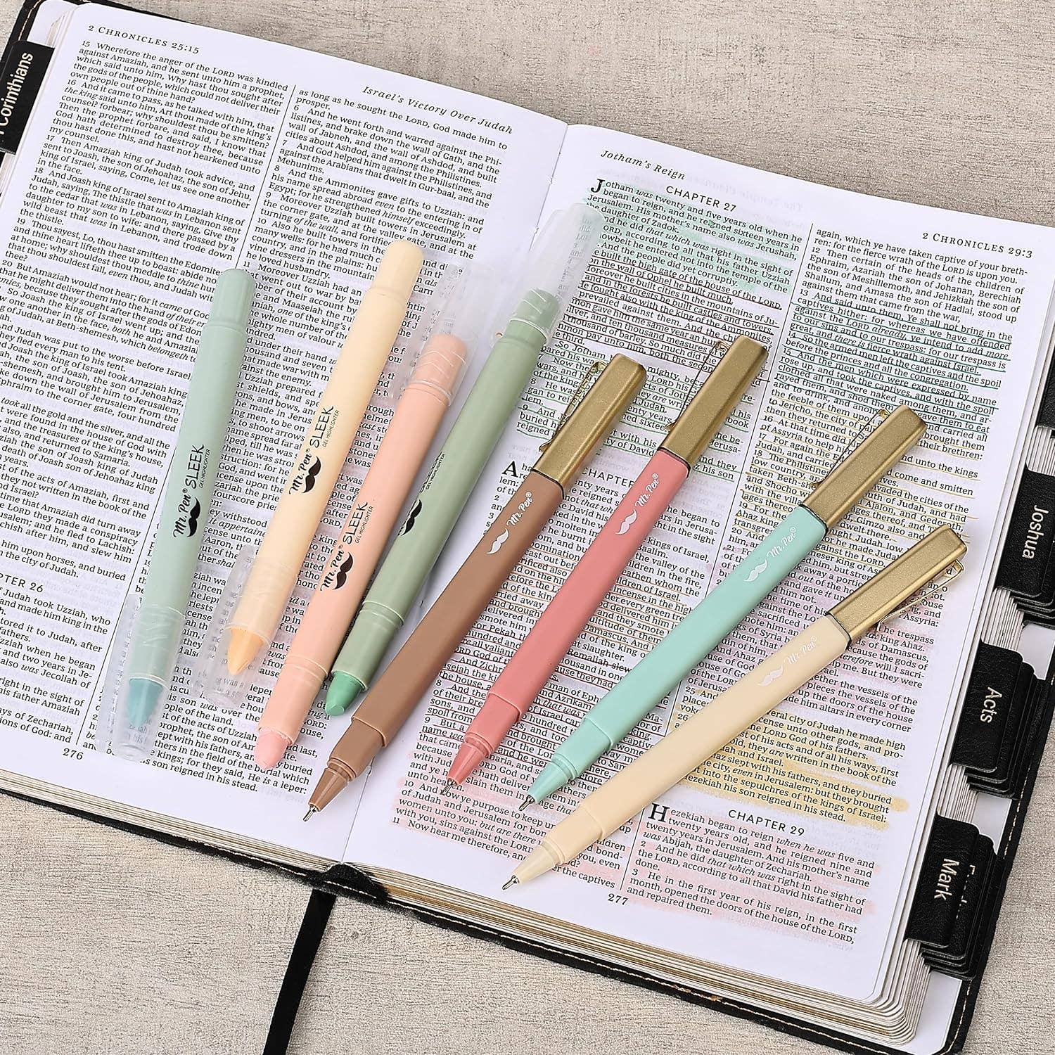 Package includes 6 soft, pastel highlighters and 6 pastel ballpens in assorted colors for versatile use. These non-neon colors are a refreshing change from the typical neon options and make for a more pleasant highlighting experience. Mr. Pen pens are filled with high-quality water-based ink that flows smoothly. The durable, quick-drying ink prevents smears and smudges, so your work stays clean and clear. See-through colors make your highlighted text easy to read. You can sharpen highlighters for finer tips. Mr. Pen Bible highlighters will not fade or smear over other inks. The highlighters are easy to apply and won't dry out if left uncapped. These cute highlighters and ballpens are suitable for school, college, home, office, and even travel diaries, schedules, work, study, notes, etc. They are also wonderful gifts for family and friends.