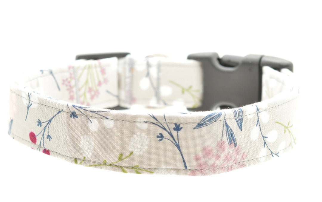 Get your pup looking paw-sitively adorable with our Gray Floral Collar! Made from 100% cotton with a charming floral pattern, this collar will have your furry friend feeling and looking like the top dog in town! (That's right, puns included!)